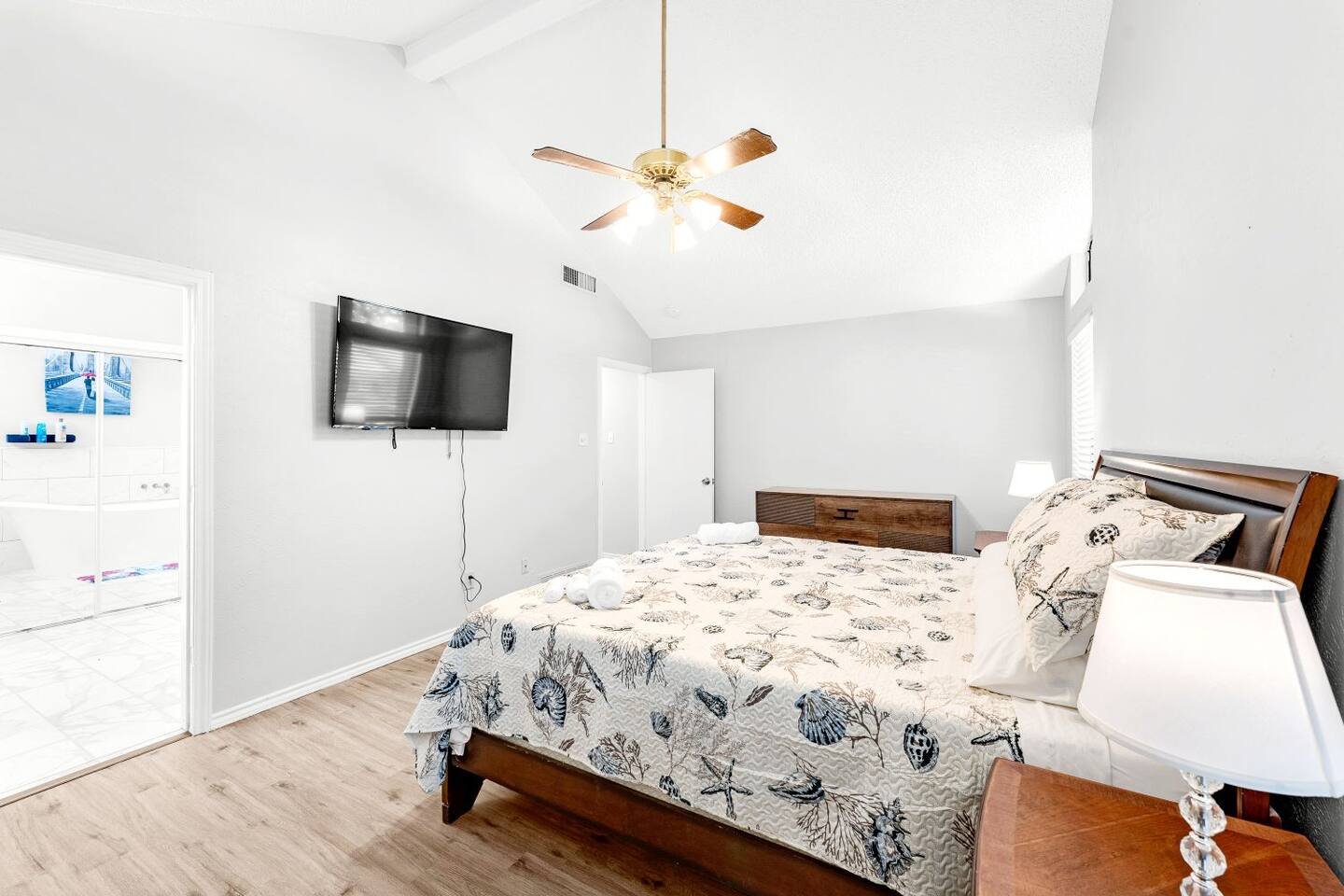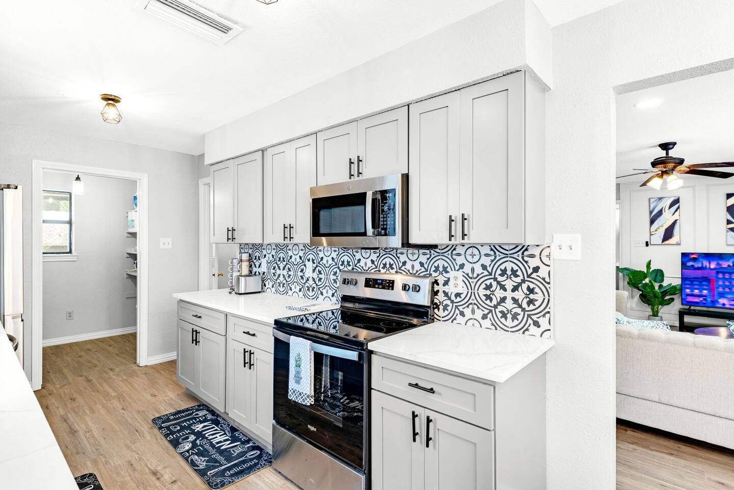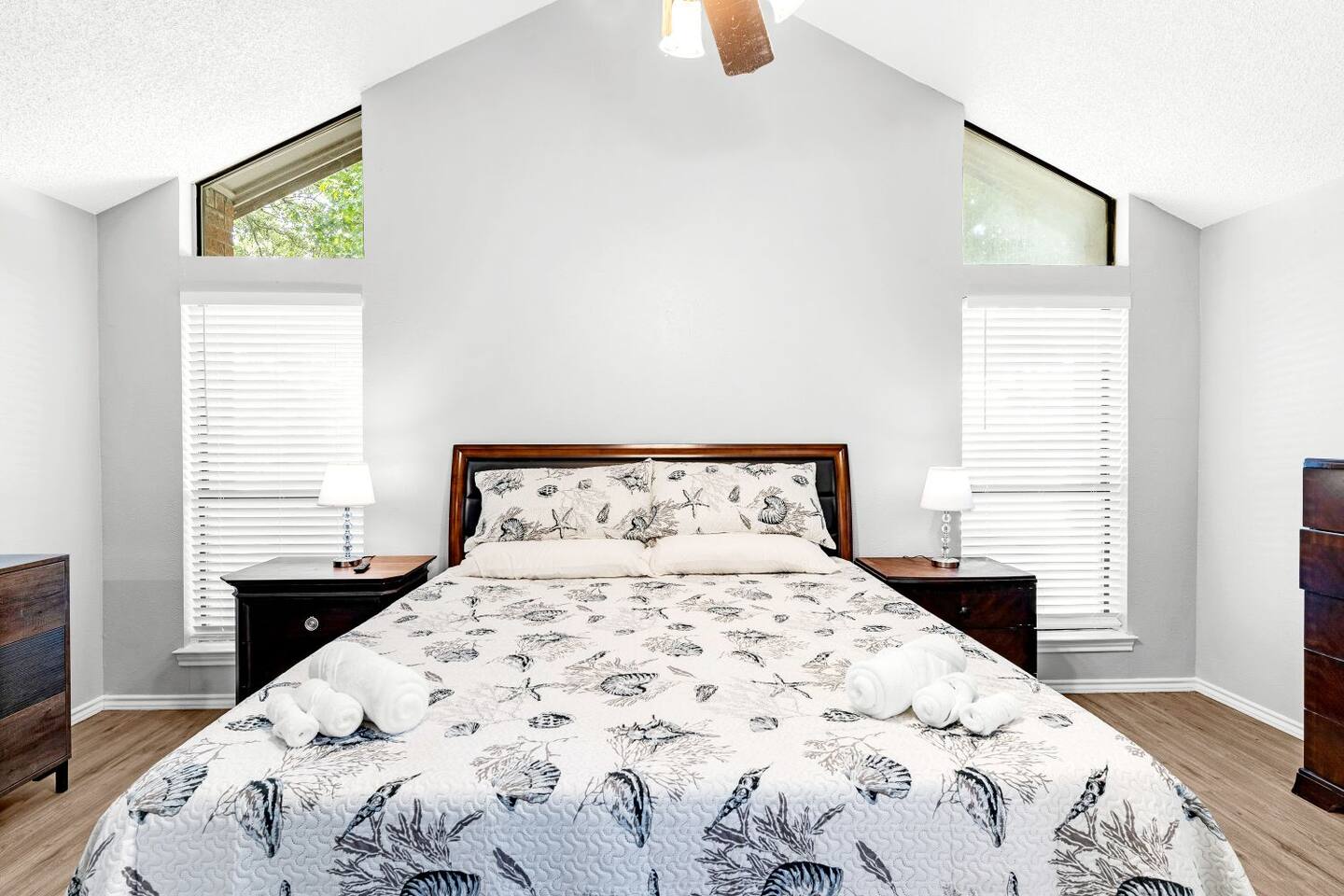 This completely remodeled, tastefully decorated, 2 story fabulous home, features 4 bedrooms, 2.5 bathrooms, 2 dinning areas, 1 living room, 1 game room with Pool Table/ Pingpong/ Air Hockey is perfect for friends and family gatherings. Downstairs Master bedroom with king-size bed, dresser, chest of drawers, night stands and attached bathroom and a large walk-in Closet, 60" Roku LED smart TV Upstairs 2nd bedroom with two full beds, night stand, walk in closet 3rd bedroom with Queen size bed, dresser, night stand, walk-in closet 4th bedroom with queen size bed, night stand, chest of drawers, walk-in closet Bathrooms 1st floor: New Master bathroom has separate frameless shower and free standing bath tub. New Half bath 2nd floor: Completely upgraded full bath and shower combo. Parking: No street parking for short-term guests (less than 30 days). Parking is available in back driveway or garage. Laundry: Guest have full access to the washer and dryer