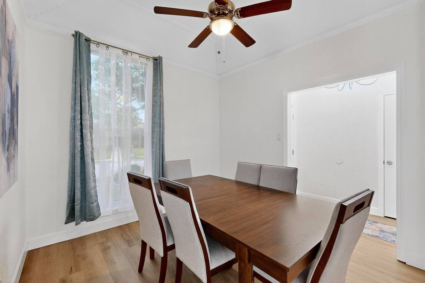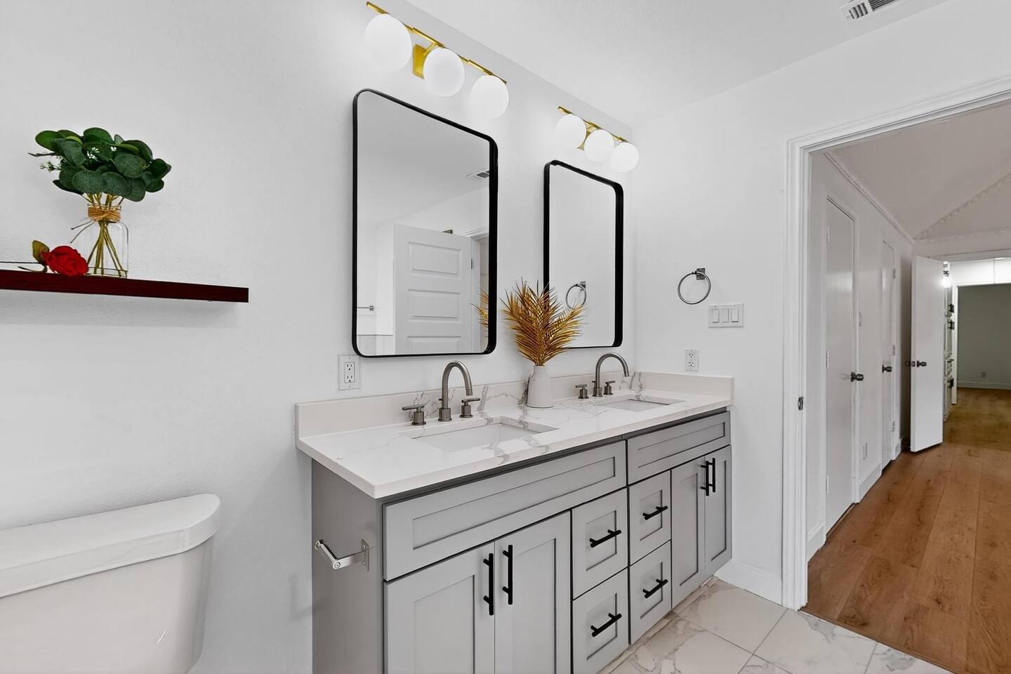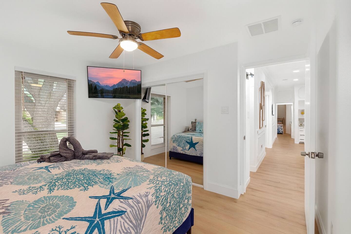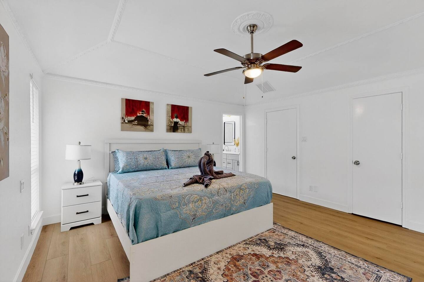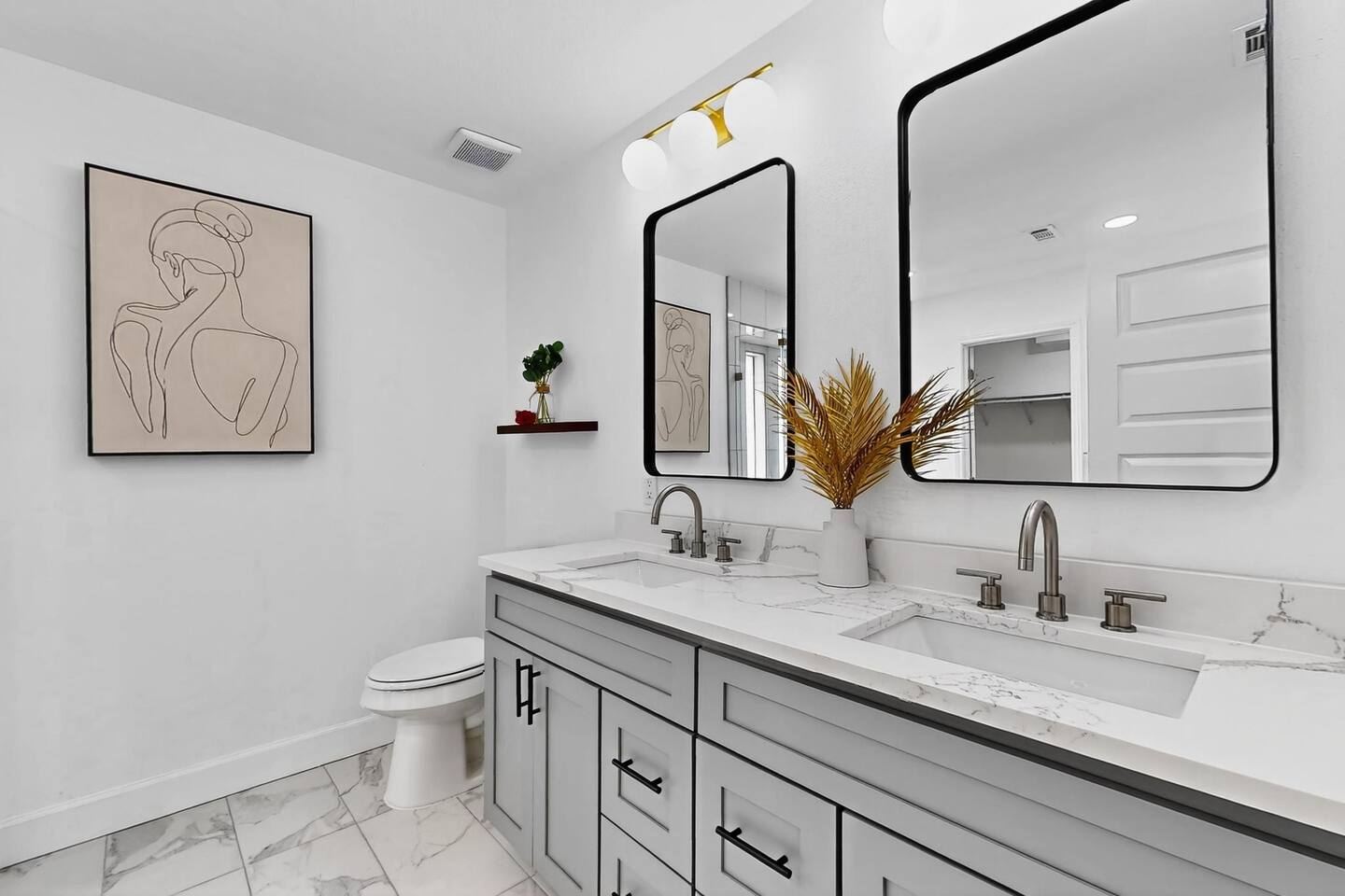Accommodations: The first master bedroom features a plush king-size bed, dressers, nightstands, and an attached bathroom with walk-in closet with ensuite bathroom. Enjoy entertainment on the 65" smart TV. The second master bedroom offers a comfortable king-size bed, nightstands, and a walk-in closet with ensuite bathroom. Enjoy a big 55" smart TV. In the third bedroom, you'll find two full-size beds, nightstands, dresser, ensuite bathroom and walk-in closet. The fourth bedroom includes a queen bed, nightstand, dresser, and a walk-in closet. Bathrooms: The home features three upgraded full bathrooms on the first floor, including two ensuite master baths, as well as an upgraded half bathroom conveniently located next to the laundry room. Parking: Guests can utilize parking spaces in the garage, in front of the house, and in the driveway, ensuring hassle-free arrivals and departures. Laundry: Guests have full access to the washer and dryer, making laundry tasks simple and convenient throughout their stay. Highlights: Modern Amenities: Fully equipped kitchen, high-speed WiFi, smart TV with streaming services. Outdoor Space: Relax in our private backyard with a patio and barbecue grill. Workspace: Dedicated workspace ideal for remote work or study. Nearby Attractions: Just minutes away, you’ll find the vibrant Carrollton Koreatown with endless dining and dessert options, the charming A.W. Perry Homestead Museum, and peaceful Carrollton Greenbelt Park for a nature escape. For golfers, Indian Creek Golf Club is close by, while outdoor lovers can explore trails at Arbor Hills Nature Preserve or Cottonwood Trail. Families and day-trippers will also enjoy easy drives to the Dallas Arboretum, Oak Point Park, and the Heard Natural Science Museum. Whether you’re here for food, culture, shopping, or the outdoors, our location makes it easy to experience the best of North Dallas. Ideal For: Business travelers seeking a quiet retreat with quick access to corporate offices. Families or groups looking for a comfortable base to explore Plano and beyond. Additional Information: Self-check-in with keypad entry. Free parking. Experience Plano like a local at our inviting home. Book your stay now and enjoy a perfect blend of convenience and comfort!