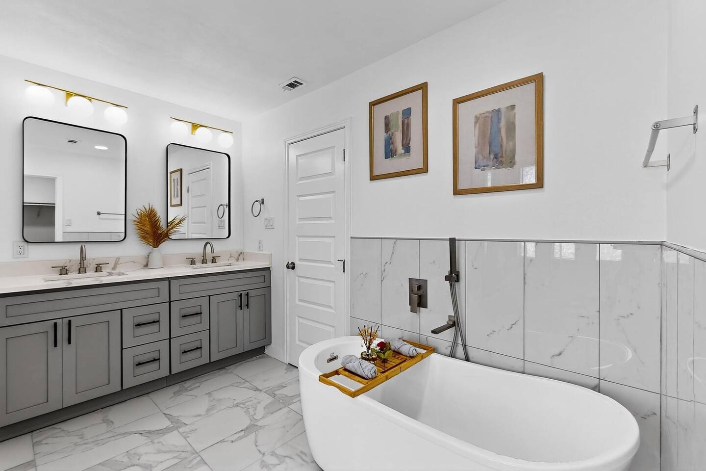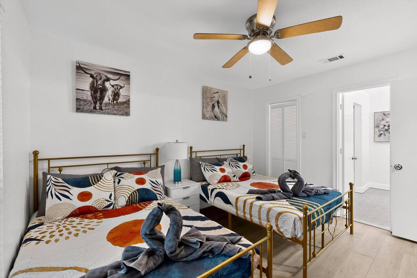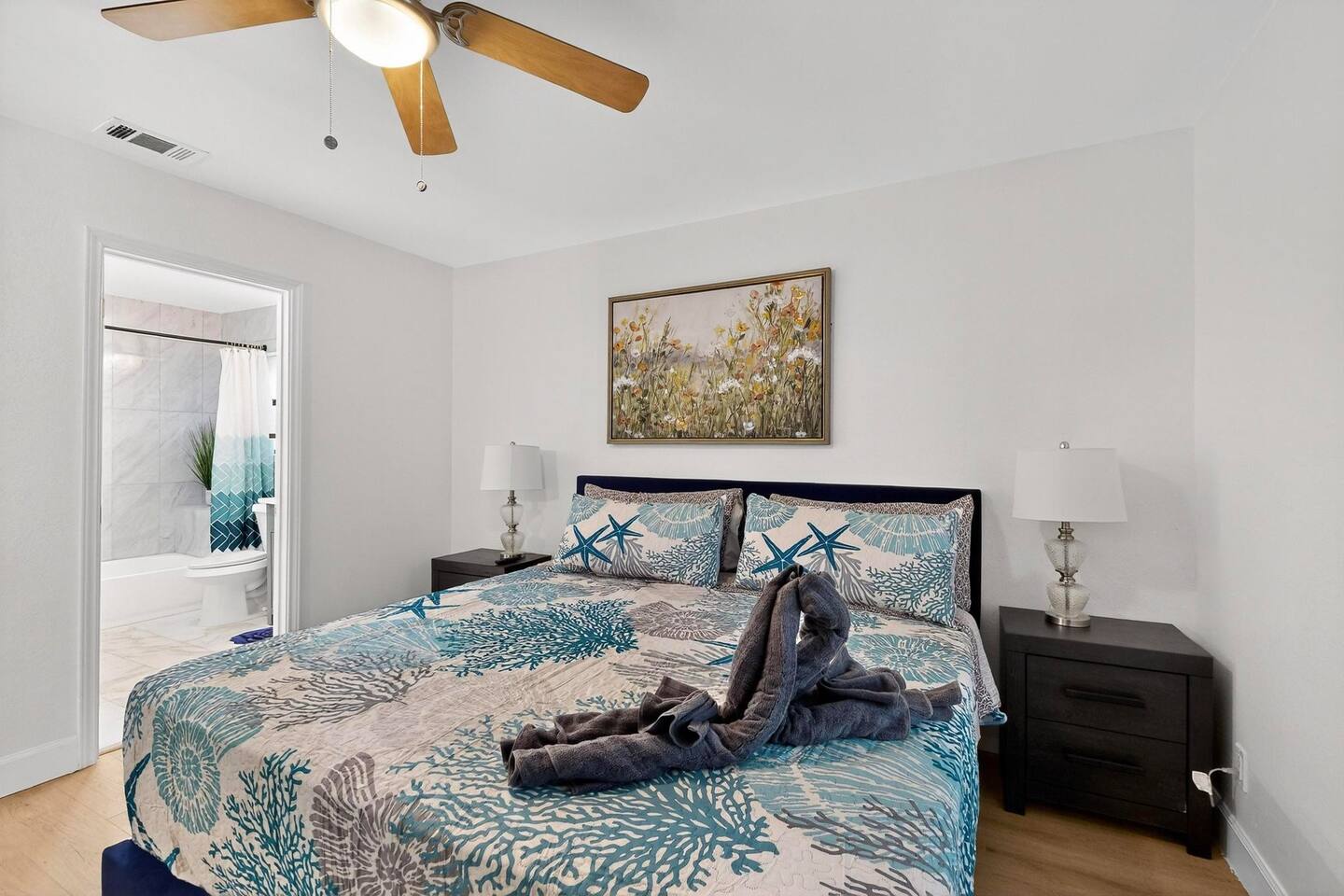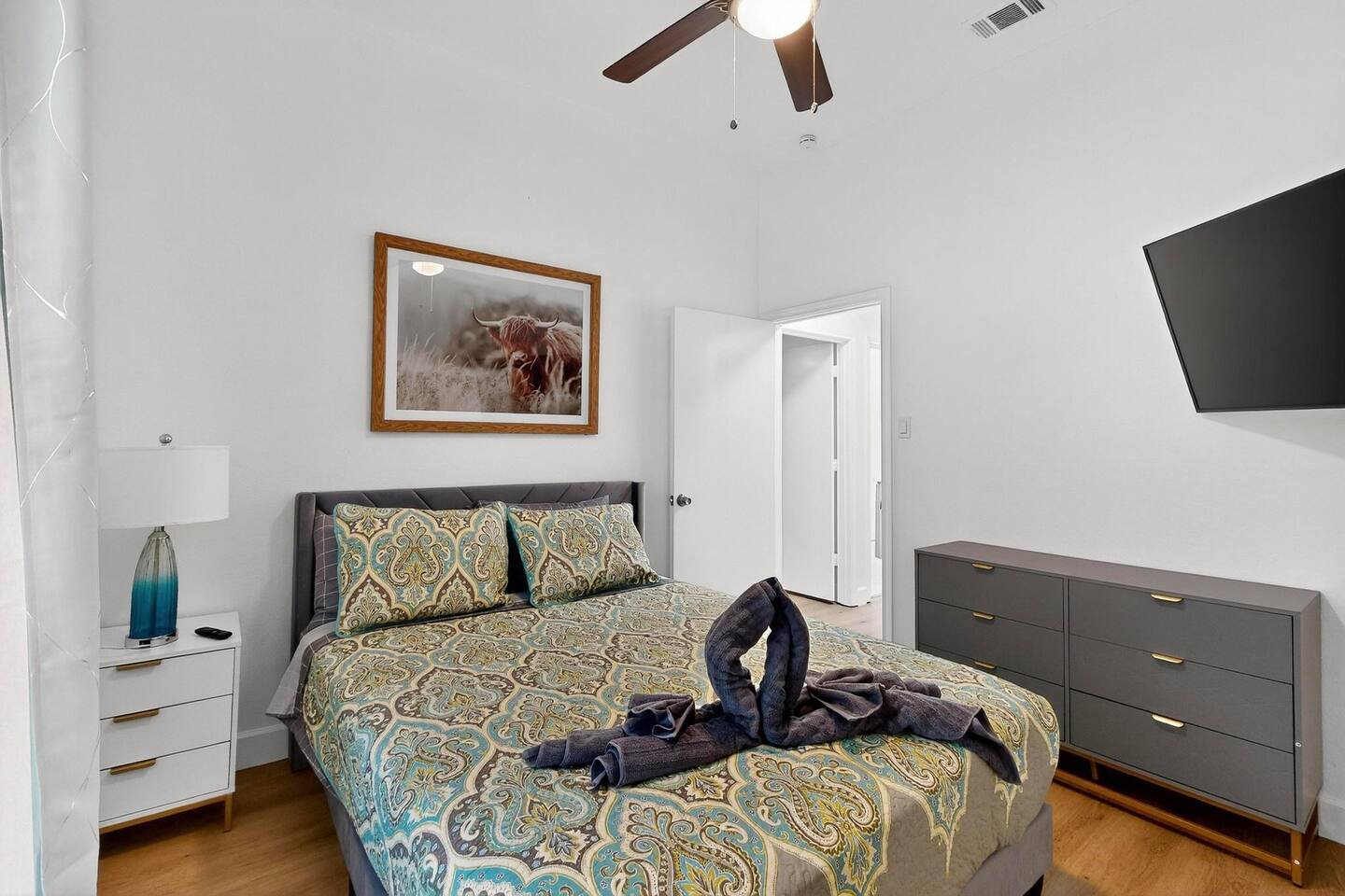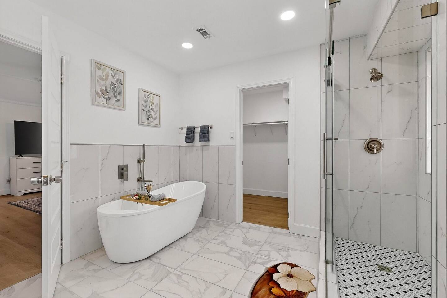 Accommodations: The first master bedroom features a plush king-size bed, dressers, nightstands, and an attached bathroom with walk-in closet with ensuite bathroom. Enjoy entertainment on the 65" smart TV. The second master bedroom offers a comfortable king-size bed, nightstands, and a walk-in closet with ensuite bathroom. Enjoy a big 55" smart TV. In the third bedroom, you'll find two full-size beds, nightstands, dresser, ensuite bathroom and walk-in closet. The fourth bedroom includes a queen bed, nightstand, dresser, and a walk-in closet. Bathrooms: The home features three upgraded full bathrooms on the first floor, including two ensuite master baths, as well as an upgraded half bathroom conveniently located next to the laundry room. Parking: Guests can utilize parking spaces in the garage, in front of the house, and in the driveway, ensuring hassle-free arrivals and departures. Laundry: Guests have full access to the washer and dryer, making laundry tasks simple and convenient throughout their stay. Highlights: Modern Amenities: Fully equipped kitchen, high-speed WiFi, smart TV with streaming services. Outdoor Space: Relax in our private backyard with a patio and barbecue grill. Workspace: Dedicated workspace ideal for remote work or study. Nearby Attractions: Just minutes away, you’ll find the vibrant Carrollton Koreatown with endless dining and dessert options, the charming A.W. Perry Homestead Museum, and peaceful Carrollton Greenbelt Park for a nature escape. For golfers, Indian Creek Golf Club is close by, while outdoor lovers can explore trails at Arbor Hills Nature Preserve or Cottonwood Trail. Families and day-trippers will also enjoy easy drives to the Dallas Arboretum, Oak Point Park, and the Heard Natural Science Museum. Whether you’re here for food, culture, shopping, or the outdoors, our location makes it easy to experience the best of North Dallas. Ideal For: Business travelers seeking a quiet retreat with quick access to corporate offices. Families or groups looking for a comfortable base to explore Plano and beyond. Additional Information: Self-check-in with keypad entry. Free parking. Experience Plano like a local at our inviting home. Book your stay now and enjoy a perfect blend of convenience and comfort!