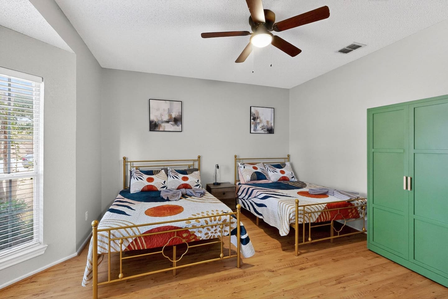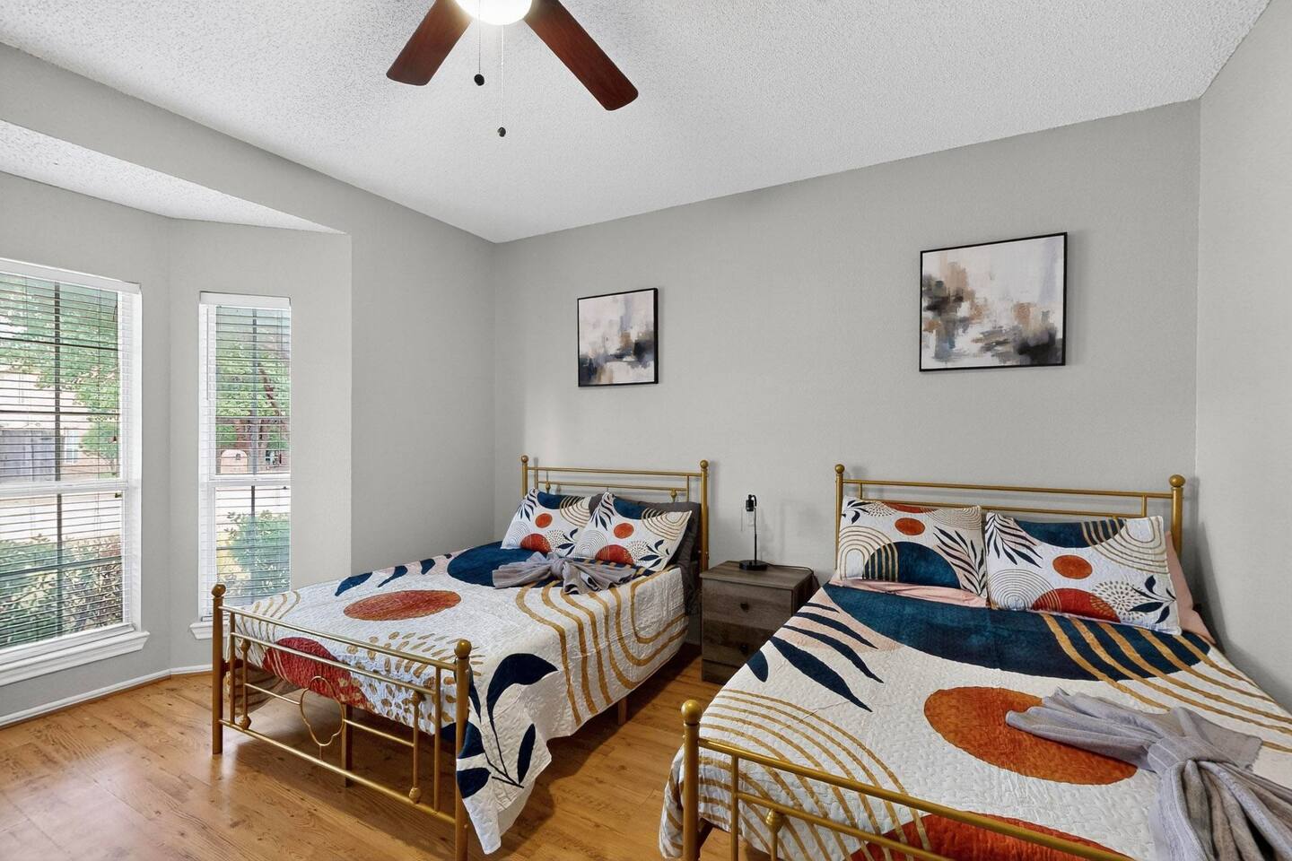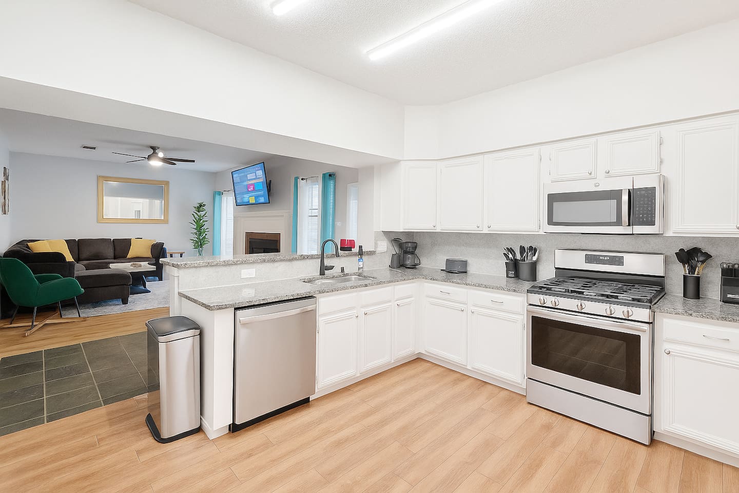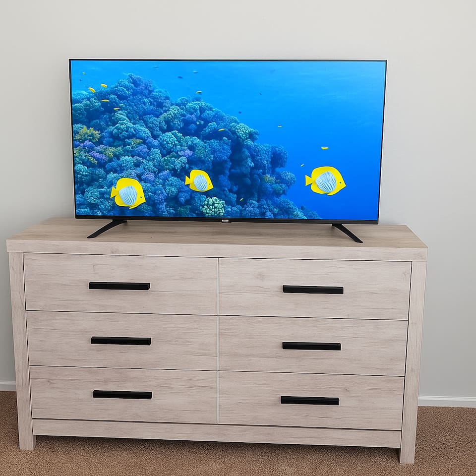 Bedrooms 1st floor: One bedroom with 2 full beds, computer desk, night stand, 55" Roku LED smart TV, sleep 4 2nd floor: Primary bedroom with king-size bed, dresser, night stands and attached bathroom and walk-in Closet, 65" Roku LED smart TV, sleep 2 3rd bedroom with Queen-size bed, dresser, night stands, closet, 50" YouTube TV, sleep 2 4th bedroom with King size bed, TV stand, night stands, walk-in closet, sleep 2 5th bedroom with full-over full bunk bed, a twin over twin bunk bed, dresser & night stands, walk-in closet, sleep 6 Bathrooms 1st floor: A half bath with a vanity and toilet 2nd floor: Beautifully remodeled master bathroom with separate bath and shower 1 upgraded full bath and shower combo. Parking: Guests can park in front of the house and the rear driveway. Laundry: Guest have full access to the washer and dryer Pool: Pool operates from May to October when weather permits. Pool hours: 10am to 10pm.