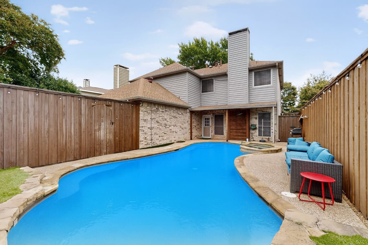Welcome to your Allen retreat. Relax in this beautifully updated 5-bedroom, 2.5-bath home featuring a sparkling private pool, open-concept living areas, and a fully equipped kitchen. Enjoy comfortable bedrooms, stylish lighting, and a peaceful neighborhood close to everything. Just minutes to Allen Premium Outlets, Watters Creek, and Legacy West—perfect for families, business travelers, or weekend getaways!