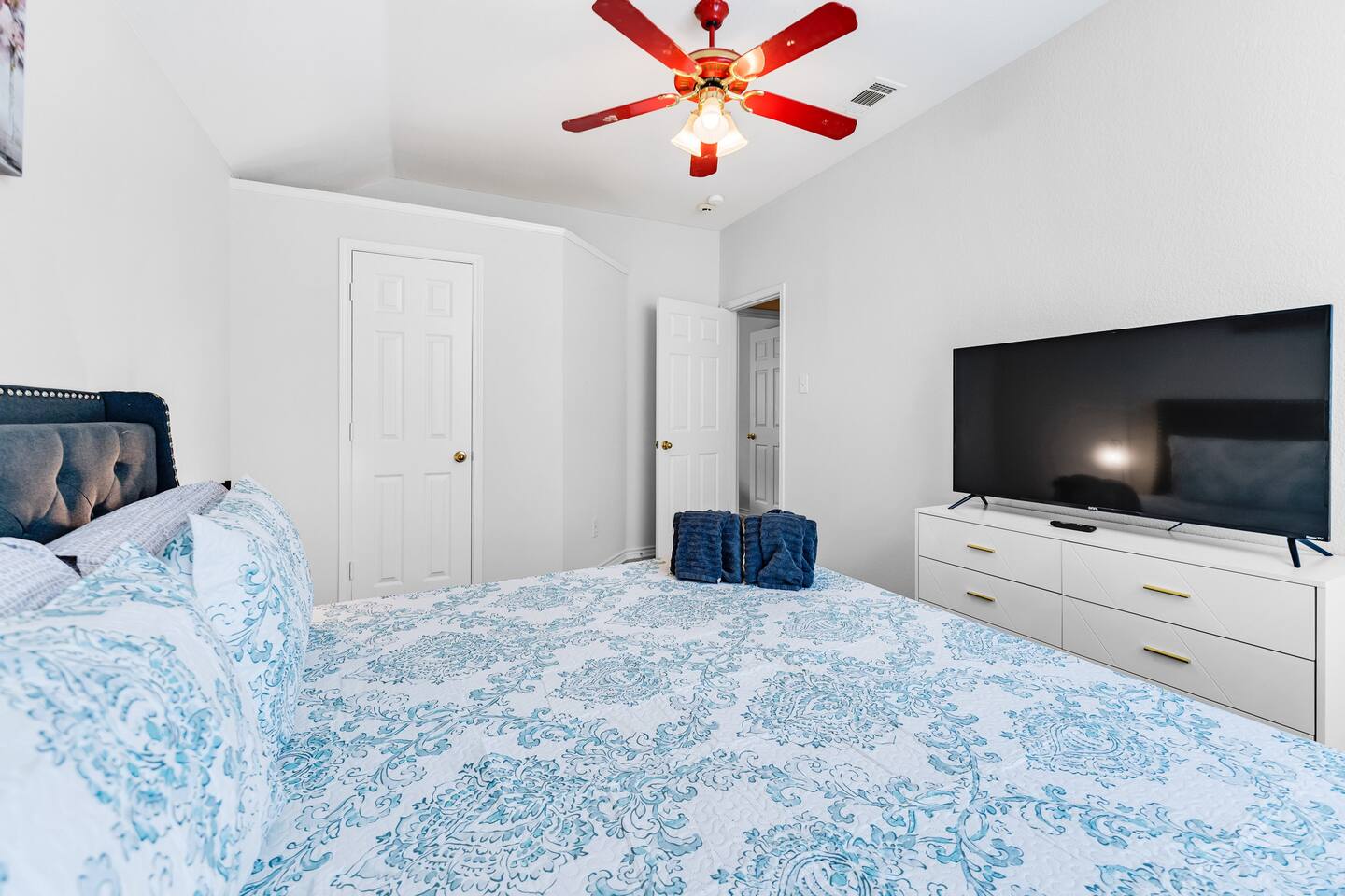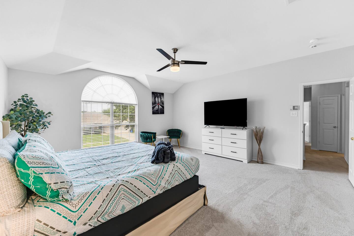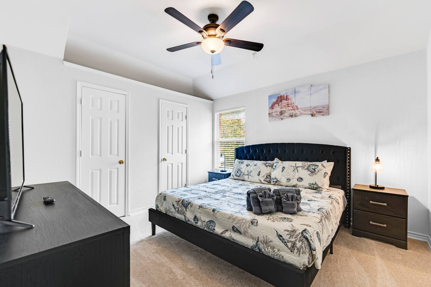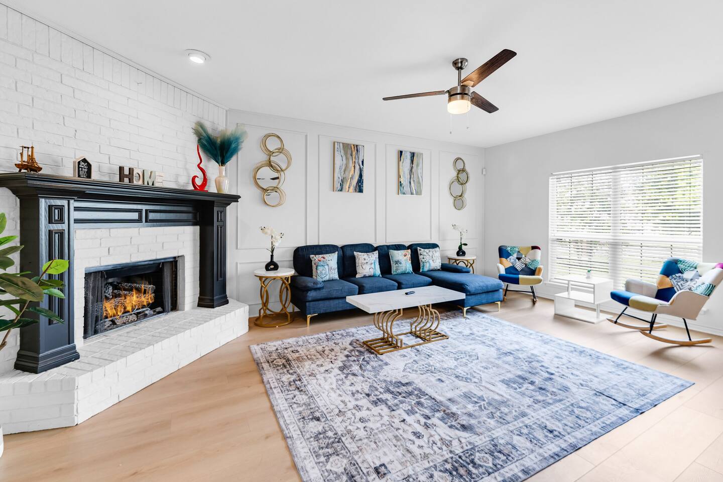 This spacious, tastefully decorated, 2 story fabulous home, features 5 bedroom, 2.5 bathrooms, 2 dinning rooms, smart TVs, is perfect for friends and family gatherings. Bedrooms 1st floor: King bed, Chest, 2 night stands, 43" LED smart TV, sleep 2 2nd floor: Master bedroom with King size bed, dresser, seating area, 2 night stands, 65" Smart TV, sleep 2 3rd bedroom with King-size bed, dresser, night stands, 43" Smart TV, sleep 2 4th bedroom with King-size beds, dresser, night stands, 43" Smart TV, sleep 2 5th bedroom with Full over full bunk bed, night stand, and a work station, sleep 4 Bathrooms 1st floor: Upgraded half bathroom. 2nd floor: Beautifully remodeled master bathroom with separate shower and bathtub. 1 upgraded full bath and shower combo. Parking: Guests can park in the garage or in the driveway. Please note that the City of Rowlett prohibits short-term parking in front of the house. Laundry: Full access to the washer and dryer.