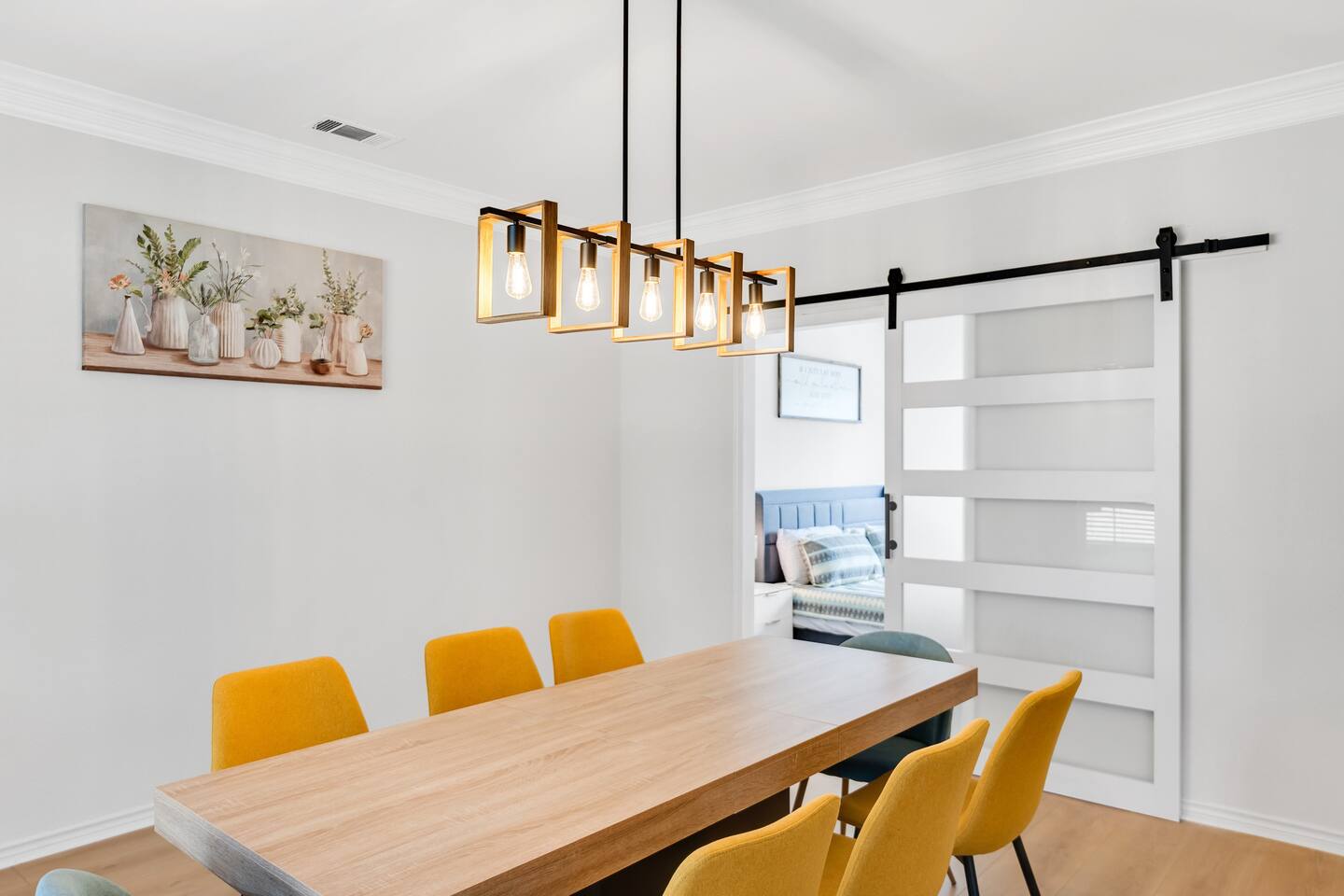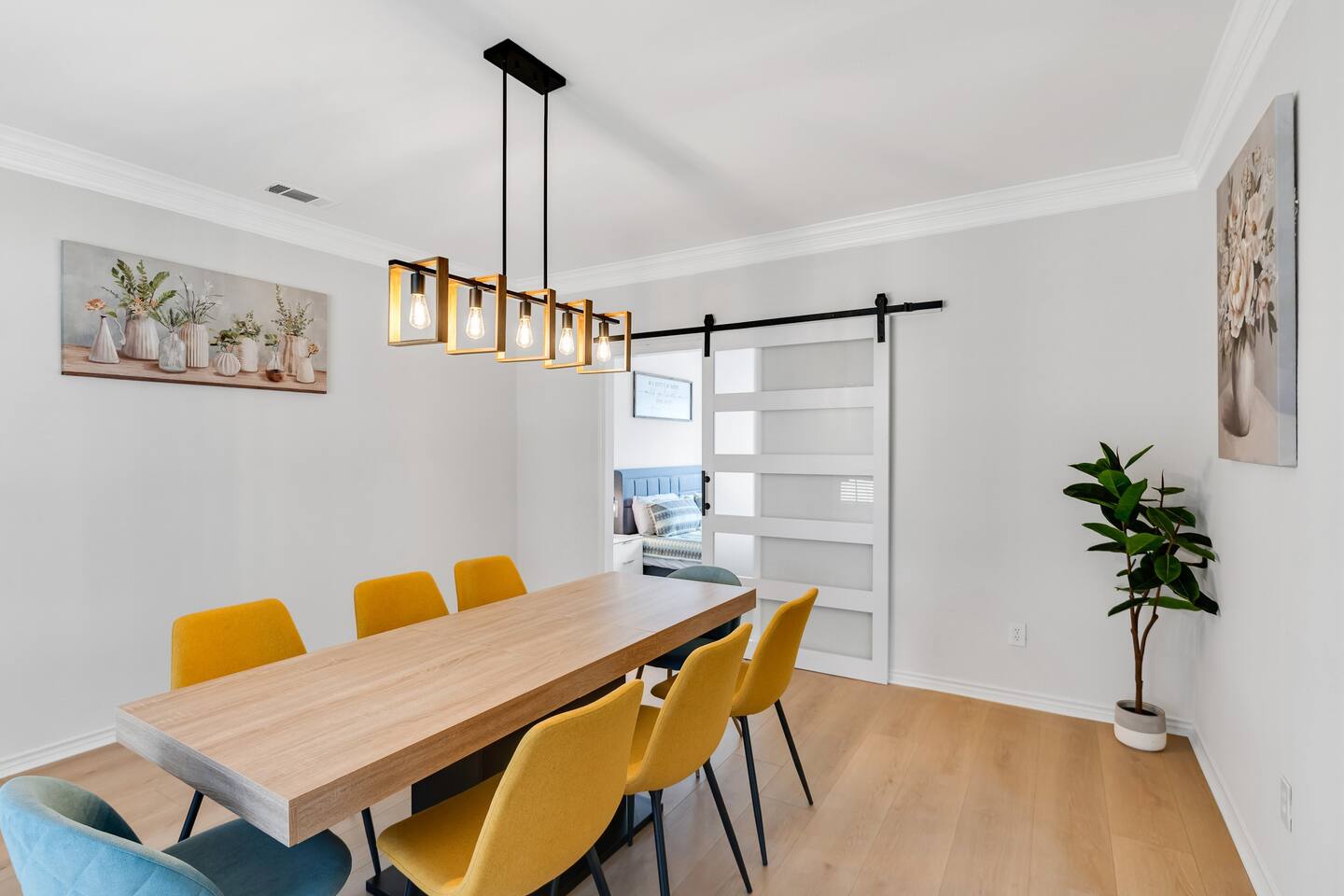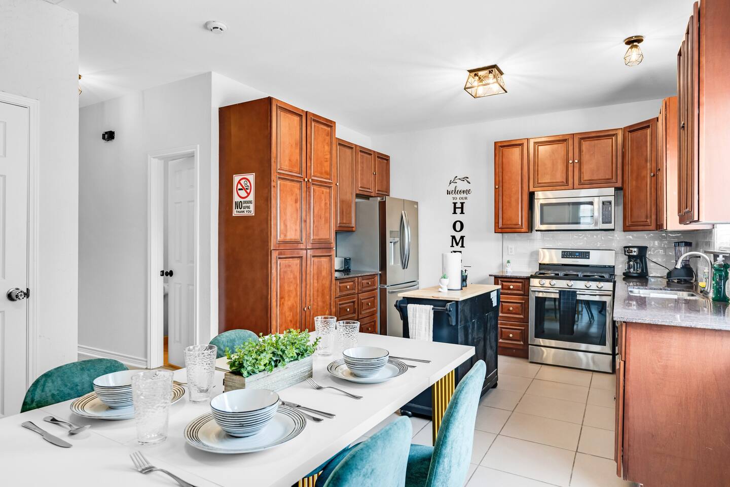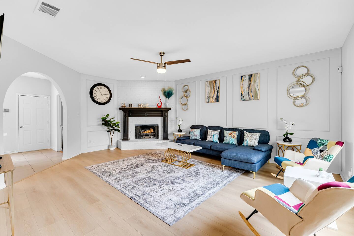 This spacious, tastefully decorated, 2 story fabulous home, features 5 bedroom, 2.5 bathrooms, 2 dinning rooms, smart TVs, is perfect for friends and family gatherings. Bedrooms 1st floor: King bed, Chest, 2 night stands, 43" LED smart TV, sleep 2 2nd floor: Master bedroom with King size bed, dresser, seating area, 2 night stands, 65" Smart TV, sleep 2 3rd bedroom with King-size bed, dresser, night stands, 43" Smart TV, sleep 2 4th bedroom with King-size beds, dresser, night stands, 43" Smart TV, sleep 2 5th bedroom with Full over full bunk bed, night stand, and a work station, sleep 4 Bathrooms 1st floor: Upgraded half bathroom. 2nd floor: Beautifully remodeled master bathroom with separate shower and bathtub. 1 upgraded full bath and shower combo. Parking: Guests can park in the garage or in the driveway. Please note that the City of Rowlett prohibits short-term parking in front of the house. Laundry: Full access to the washer and dryer.