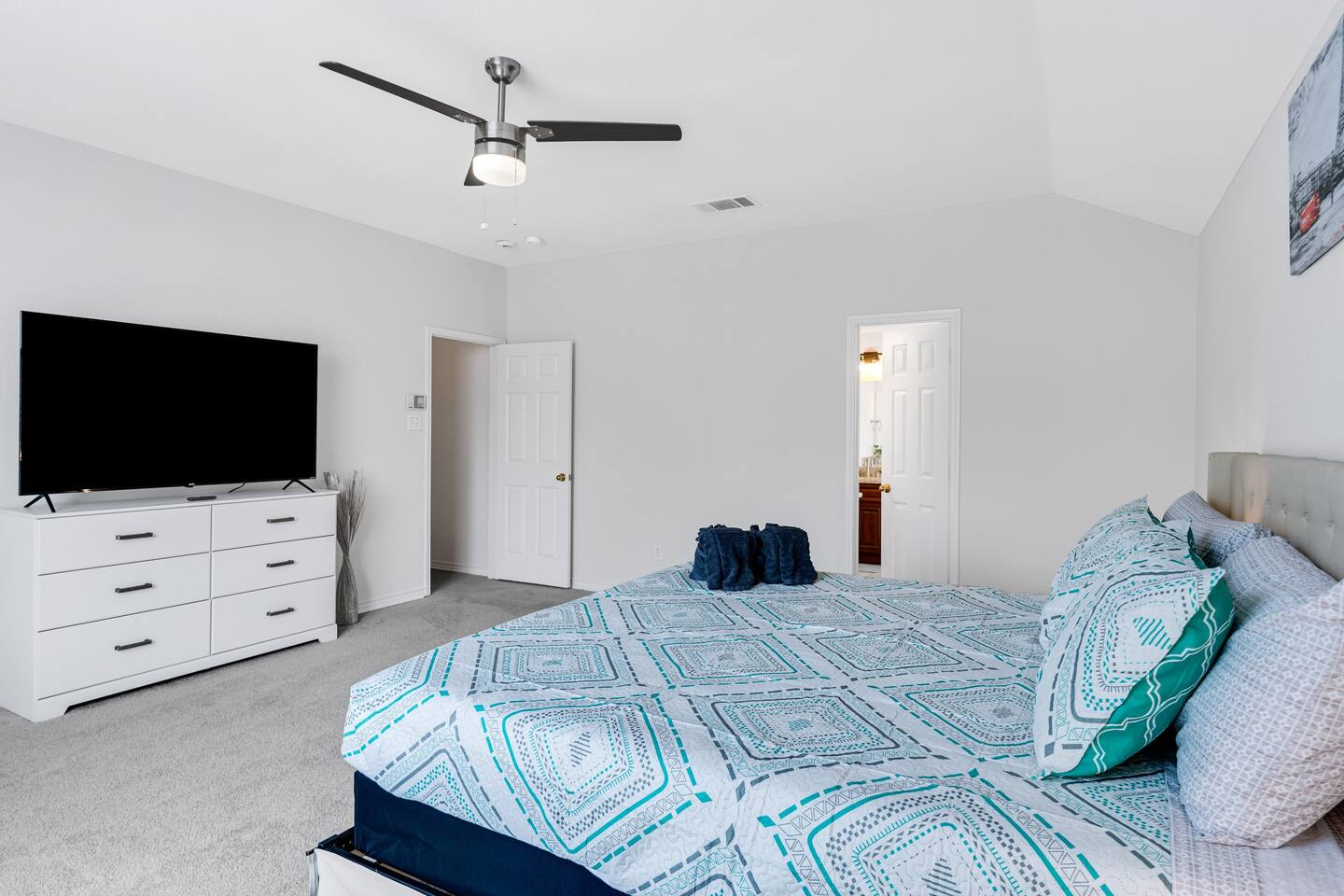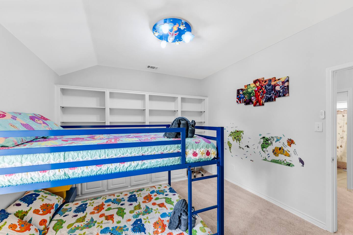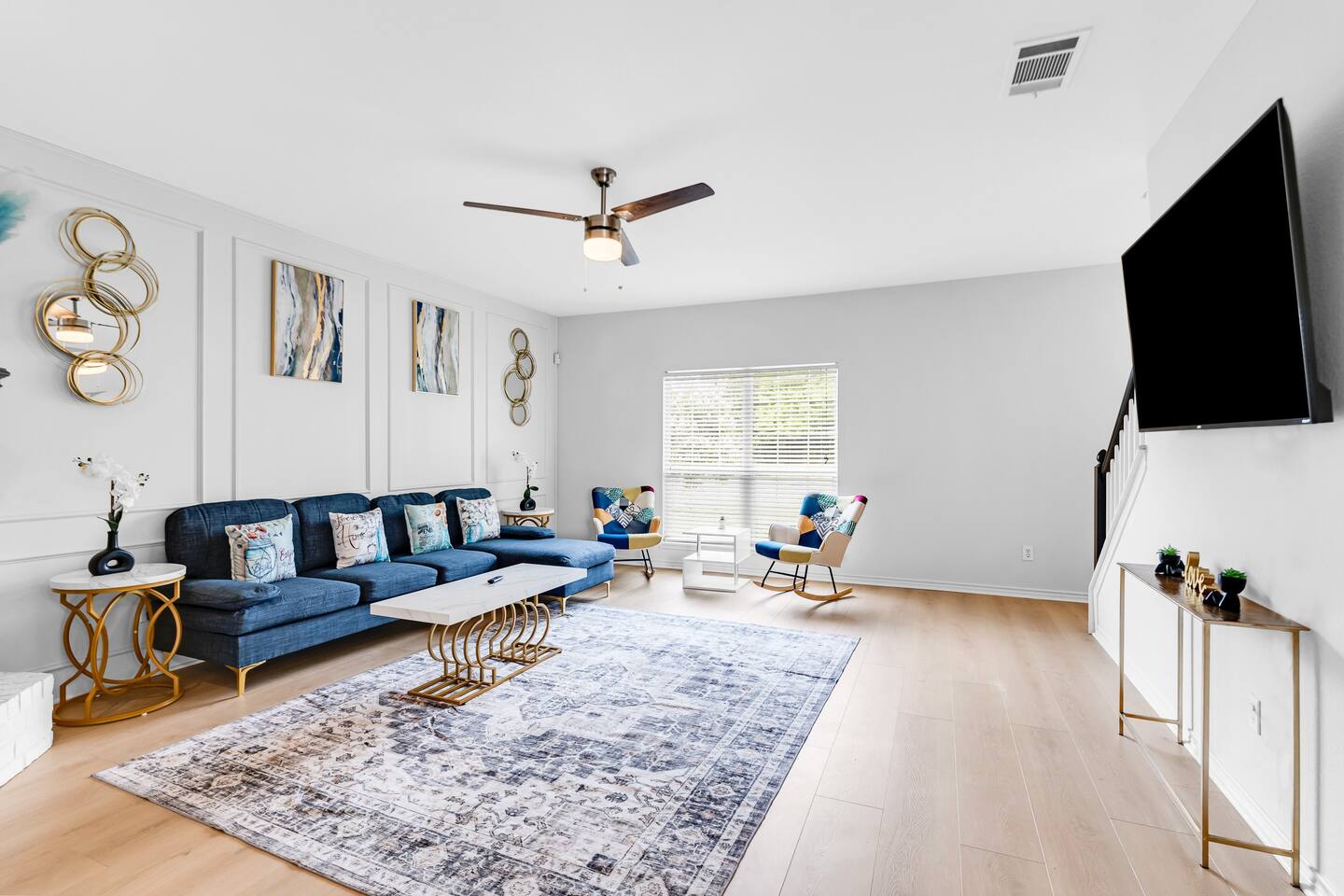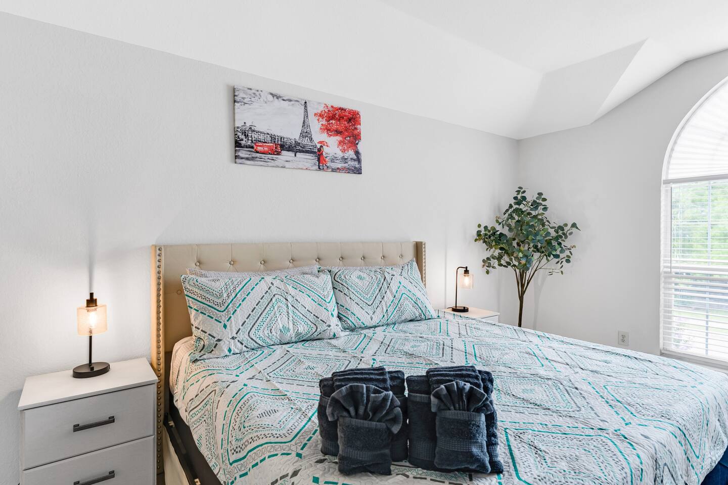 This spacious, tastefully decorated, 2 story fabulous home, features 5 bedroom, 2.5 bathrooms, 2 dinning rooms, smart TVs, is perfect for friends and family gatherings. Bedrooms 1st floor: King bed, Chest, 2 night stands, 43" LED smart TV, sleep 2 2nd floor: Master bedroom with King size bed, dresser, seating area, 2 night stands, 65" Smart TV, sleep 2 3rd bedroom with King-size bed, dresser, night stands, 43" Smart TV, sleep 2 4th bedroom with King-size beds, dresser, night stands, 43" Smart TV, sleep 2 5th bedroom with Full over full bunk bed, night stand, and a work station, sleep 4 Bathrooms 1st floor: Upgraded half bathroom. 2nd floor: Beautifully remodeled master bathroom with separate shower and bathtub. 1 upgraded full bath and shower combo. Parking: Guests can park in the garage or in the driveway. Please note that the City of Rowlett prohibits short-term parking in front of the house. Laundry: Full access to the washer and dryer.