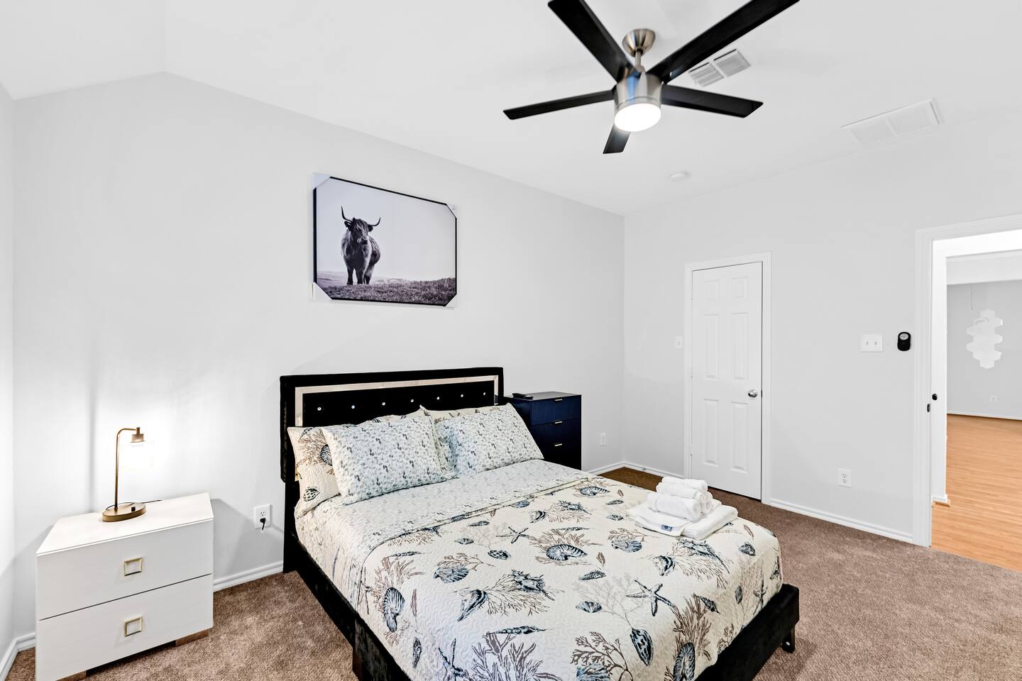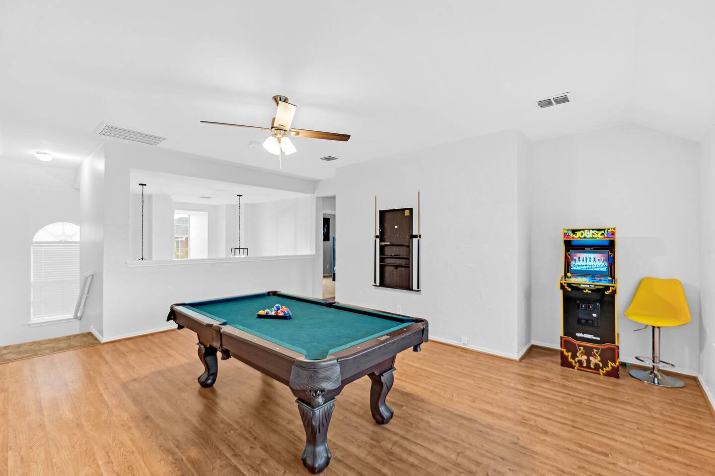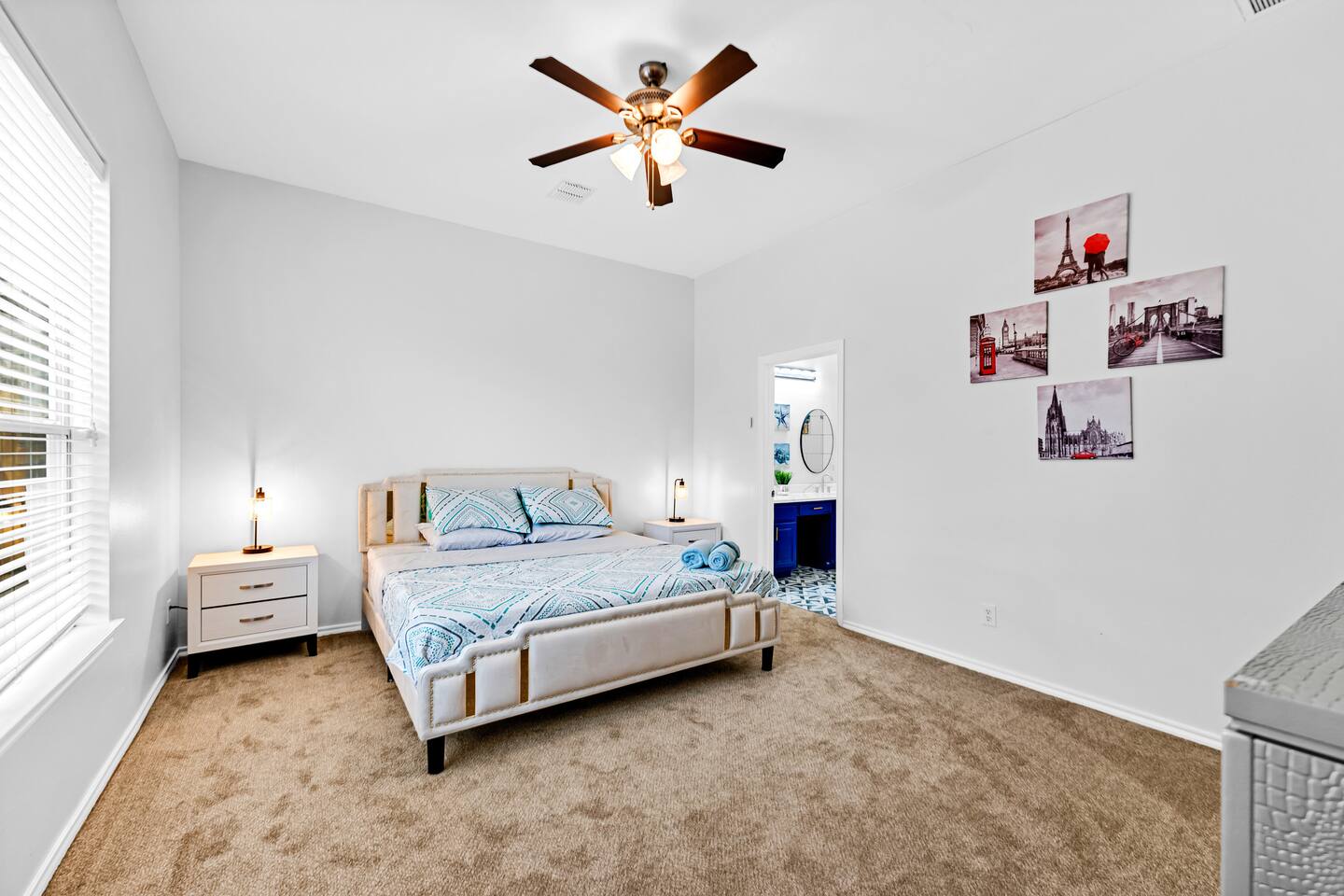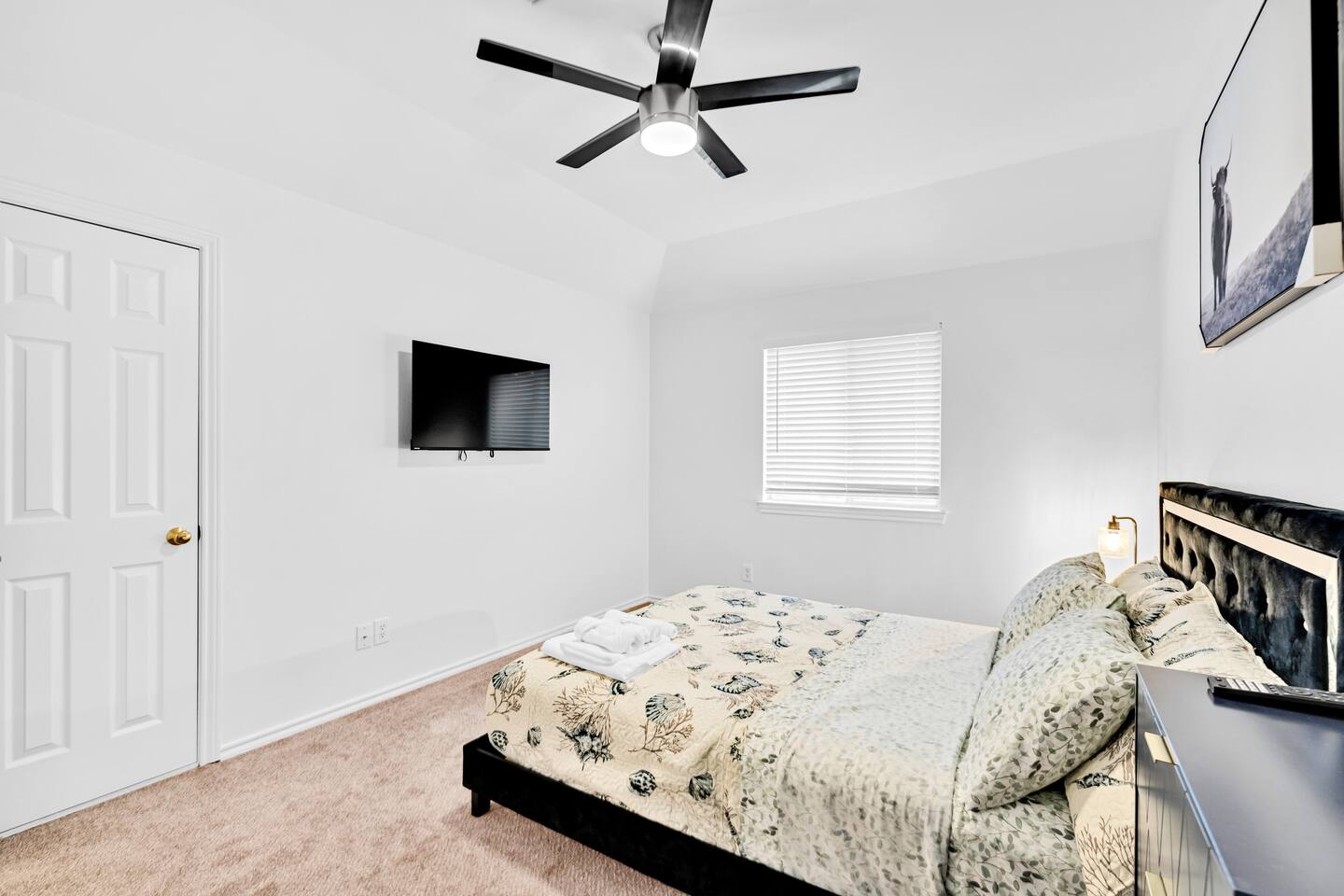 Discover our charming 2-story 4-bedroom home in Grand Prairie, featuring a delightful pool. Strategically located, it's a short drive, under 10 minutes, to Six Flags, Hurricane Harbor water park, Cowboys Stadium, Globe Life Park (home of the Rangers), and Texas Live! Moreover, DFW airport is just a quick 20-minute trip away. With spacious interiors and tasteful decor, our home comfortably sleeps up to 12 guests, boasting two driveways and two garage parking spaces for your convenience.