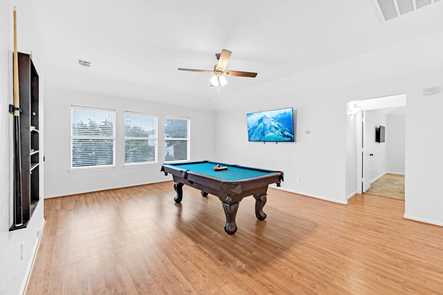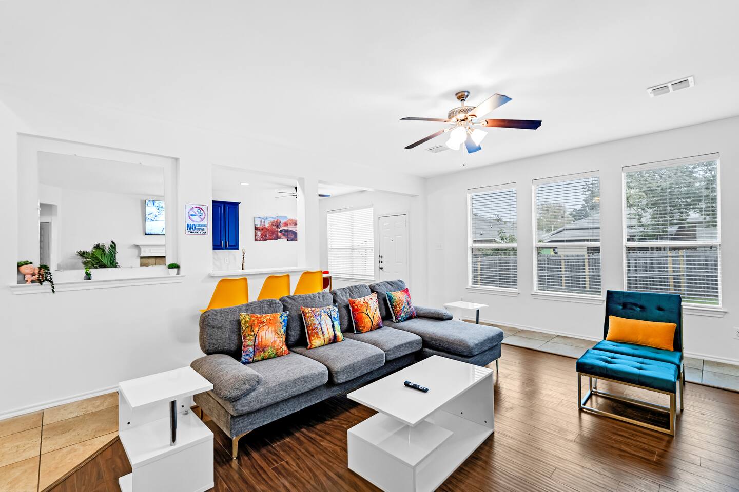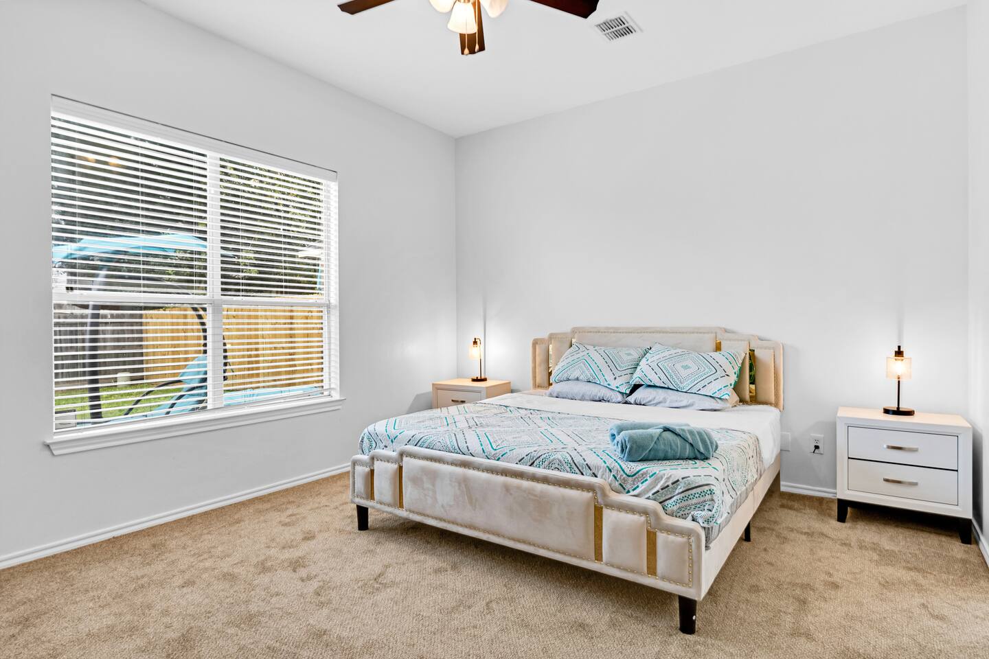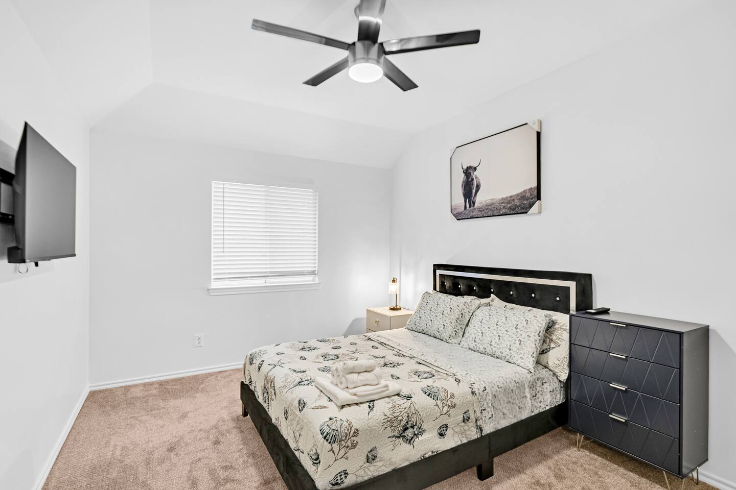 Discover our charming 2-story 4-bedroom home in Grand Prairie, featuring a delightful pool. Strategically located, it's a short drive, under 10 minutes, to Six Flags, Hurricane Harbor water park, Cowboys Stadium, Globe Life Park (home of the Rangers), and Texas Live! Moreover, DFW airport is just a quick 20-minute trip away. With spacious interiors and tasteful decor, our home comfortably sleeps up to 12 guests, boasting two driveways and two garage parking spaces for your convenience.