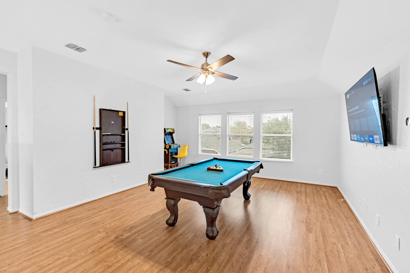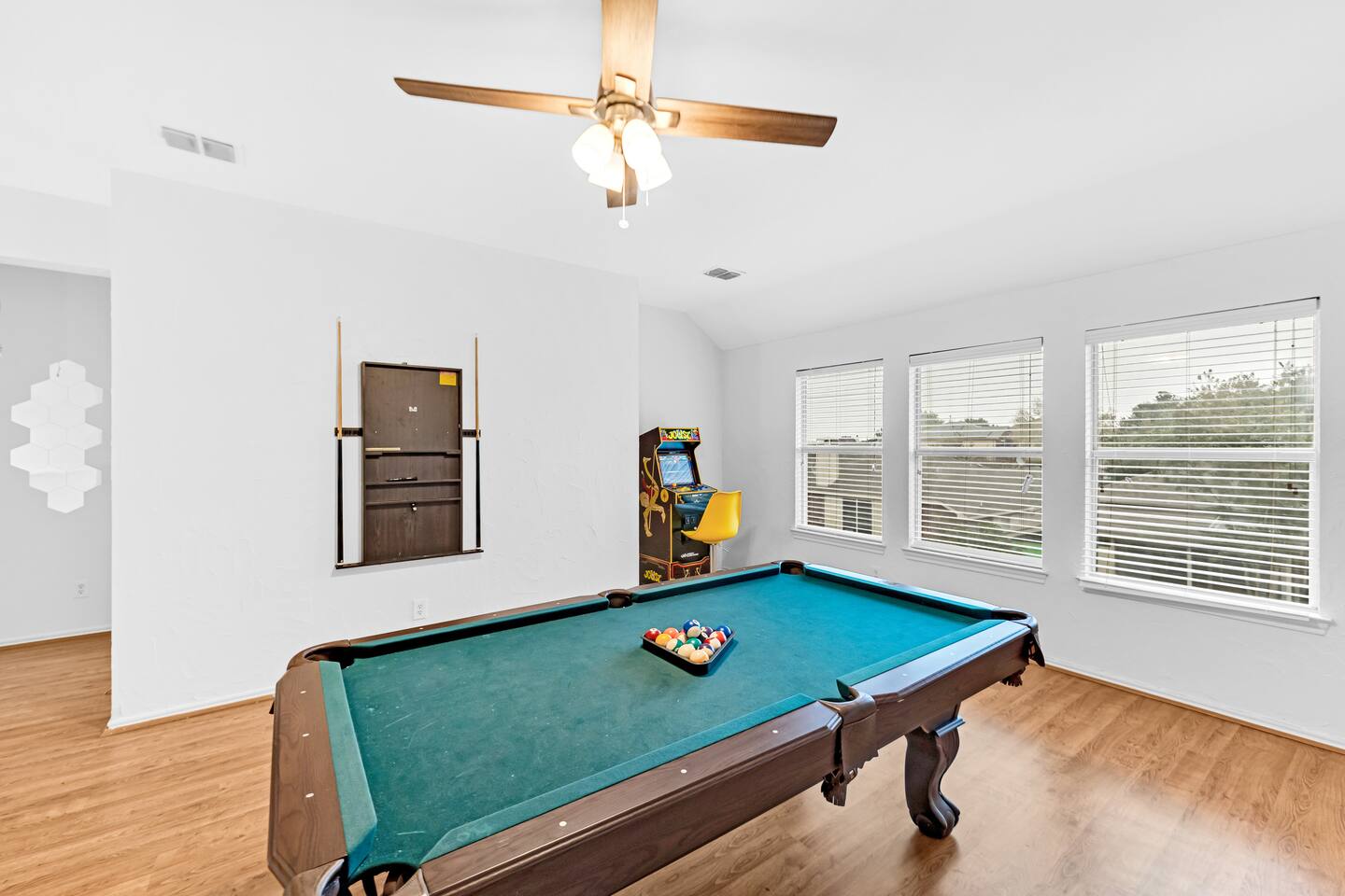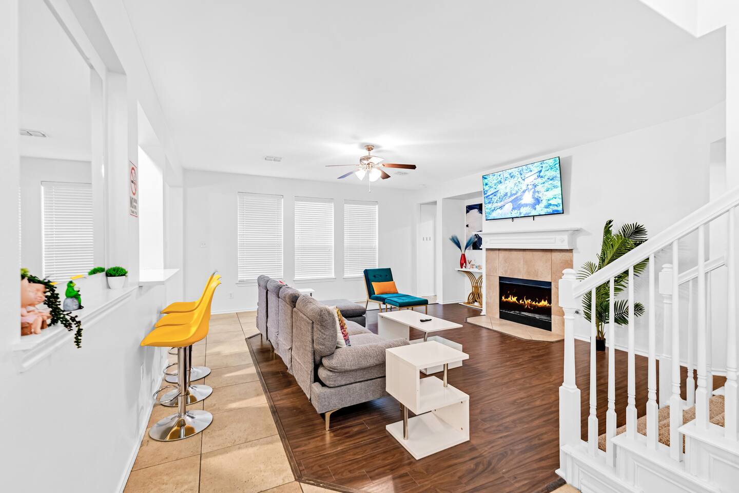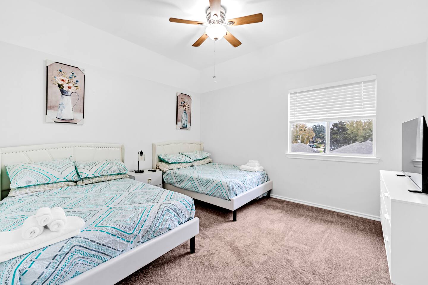Discover our charming 2-story 4-bedroom home in Grand Prairie, featuring a delightful pool. Strategically located, it's a short drive, under 10 minutes, to Six Flags, Hurricane Harbor water park, Cowboys Stadium, Globe Life Park (home of the Rangers), and Texas Live! Moreover, DFW airport is just a quick 20-minute trip away. With spacious interiors and tasteful decor, our home comfortably sleeps up to 12 guests, boasting two driveways and two garage parking spaces for your convenience.