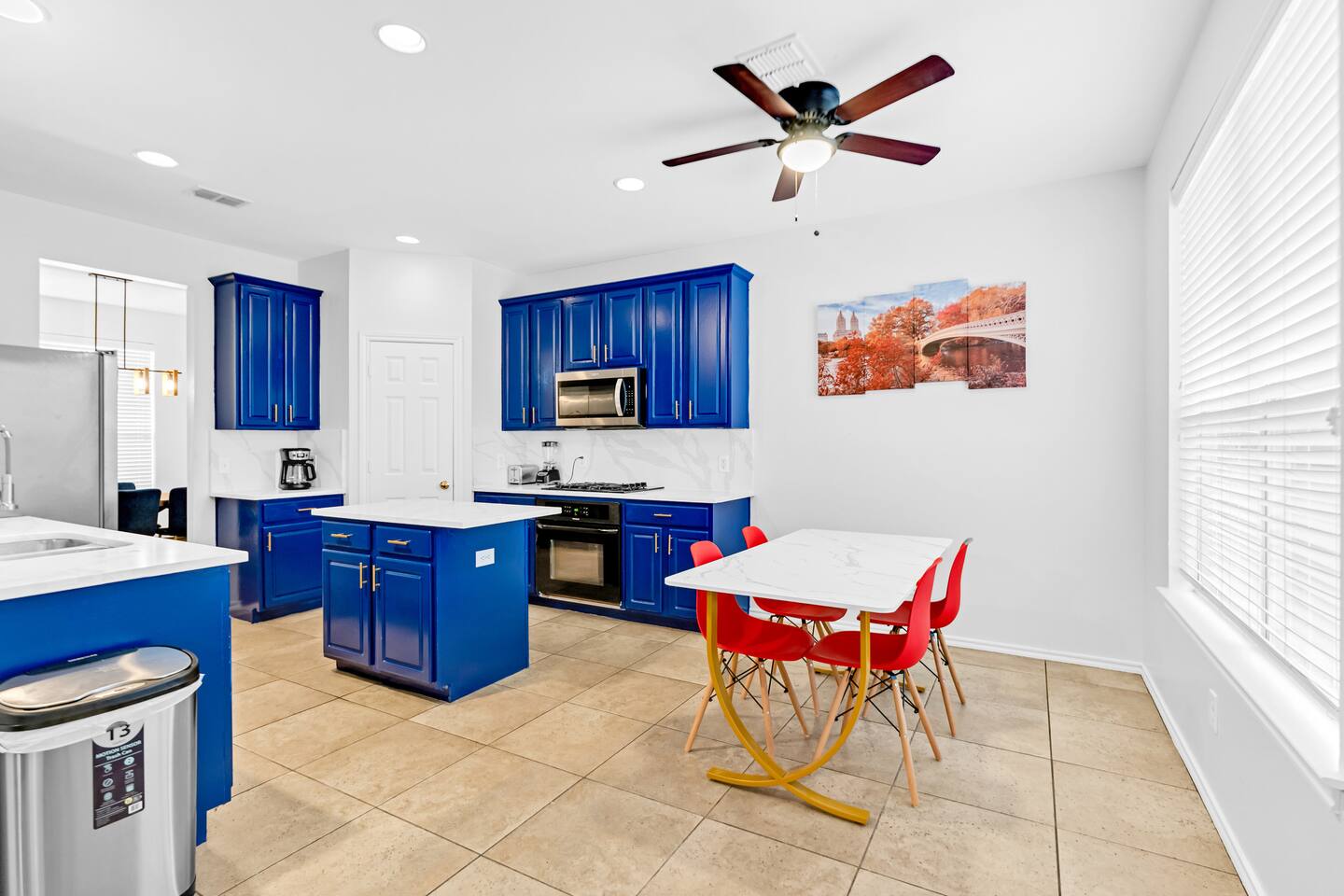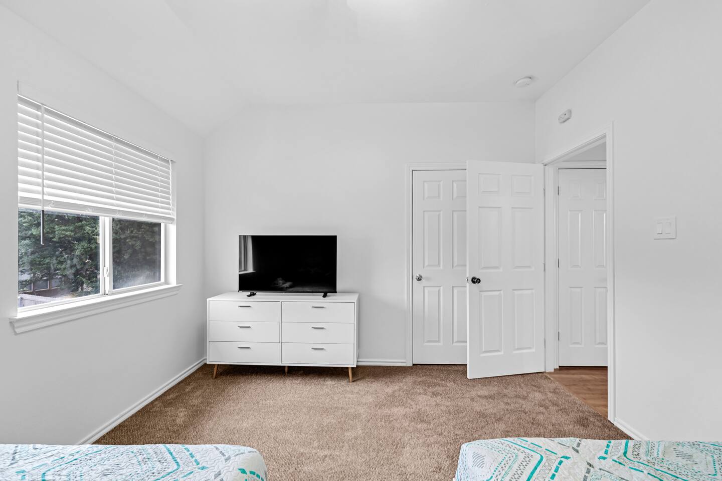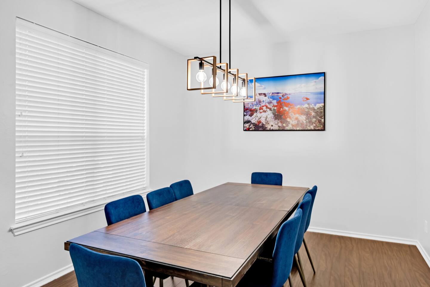 Nestled within this magnificent two-story residence, you'll discover a spacious and impeccably adorned sanctuary, boasting four bedrooms, two and a half bathrooms, and two dining areas. The allure of an inviting in-ground pool, complemented by five smart TVs, makes it an ideal setting for cherished gatherings with both friends and family. Bedrooms: First Floor: The master bedroom, adorned with a king-sized bed, dresser, two nightstands, and a generous 65" LED smart TV, offers a luxurious retreat for two. Second Floor: The second bedroom features a queen-sized bed, a chest of drawers, a nightstand, and a 43" smart TV, providing a cozy haven for two guests. The third bedroom boasts two full-sized beds, a dresser, a nightstand, and a 43" smart TV, accommodating up to four guests. The fourth bedroom is equipped with full-over-full bunk beds, a chest of drawers, and a nightstand, offering sleeping arrangements for four guests. Bathrooms: First Floor: An elegantly remodeled master bathroom awaits, featuring a separate shower and tub for your indulgence. A newly upgraded half bathroom provides added convenience. Second Floor: A beautifully remodeled bathroom offers a combined bath and shower experience, ensuring comfort and style. Parking: Guests are welcomed to park in both the front driveway and garage, as per city code ordinance, street parking is not permitted. Laundry: Guests enjoy full access to the washer and dryer facilities, ensuring convenience during their stay. Pool: Heated SPA operates all year around when temperature is over 40F. A heating fee of $50 per day will apply. Please send in a heating request one day in advance as it takes a few hours to heat the SPA into the desired temperature. We expect to take payment for heating fee upon your heating request. Pool & SPA hours: 10am to 10pm.