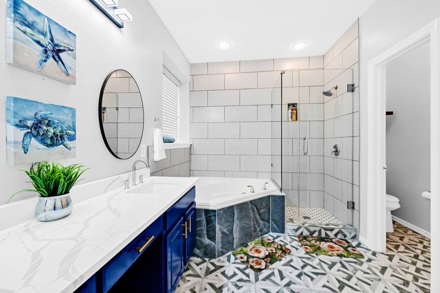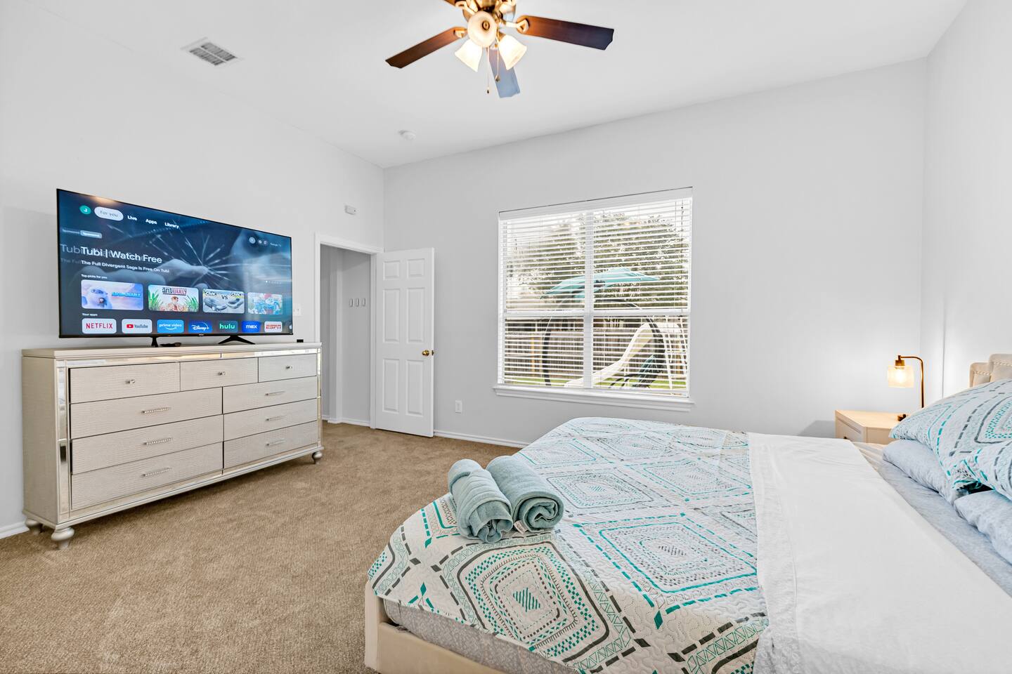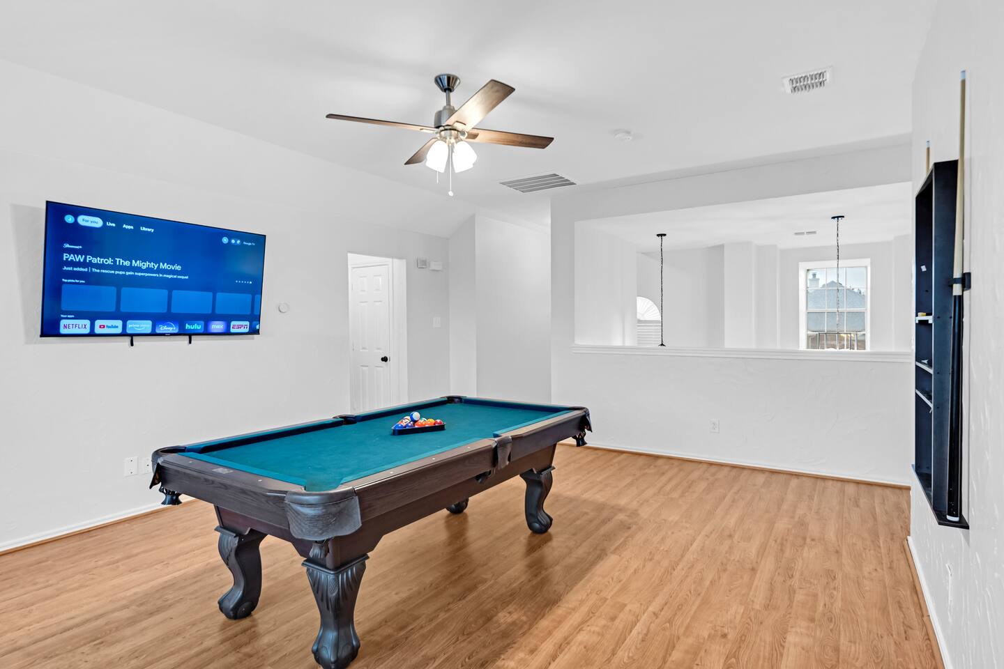 Nestled within this magnificent two-story residence, you'll discover a spacious and impeccably adorned sanctuary, boasting four bedrooms, two and a half bathrooms, and two dining areas. The allure of an inviting in-ground pool, complemented by five smart TVs, makes it an ideal setting for cherished gatherings with both friends and family. Bedrooms: First Floor: The master bedroom, adorned with a king-sized bed, dresser, two nightstands, and a generous 65" LED smart TV, offers a luxurious retreat for two. Second Floor: The second bedroom features a queen-sized bed, a chest of drawers, a nightstand, and a 43" smart TV, providing a cozy haven for two guests. The third bedroom boasts two full-sized beds, a dresser, a nightstand, and a 43" smart TV, accommodating up to four guests. The fourth bedroom is equipped with full-over-full bunk beds, a chest of drawers, and a nightstand, offering sleeping arrangements for four guests. Bathrooms: First Floor: An elegantly remodeled master bathroom awaits, featuring a separate shower and tub for your indulgence. A newly upgraded half bathroom provides added convenience. Second Floor: A beautifully remodeled bathroom offers a combined bath and shower experience, ensuring comfort and style. Parking: Guests are welcomed to park in both the front driveway and garage, as per city code ordinance, street parking is not permitted. Laundry: Guests enjoy full access to the washer and dryer facilities, ensuring convenience during their stay. Pool: Heated SPA operates all year around when temperature is over 40F. A heating fee of $50 per day will apply. Please send in a heating request one day in advance as it takes a few hours to heat the SPA into the desired temperature. We expect to take payment for heating fee upon your heating request. Pool & SPA hours: 10am to 10pm.